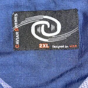 Cavier Dreams Mens Button-Up Navy White Check Convertible Sleeve size 2XL Cotton