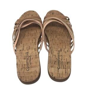 Cayce Sandals By Comfortiva. Size 8W. Contoured cork footbed with exclusive Pillowtop technology makes this strappy sandal both comfortable & chic. Leather upper, synthetic lining & sole. Excellent used condition. No box.