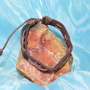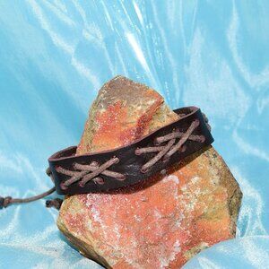 Caz Punch Mens Cross Stitch Leather Bracelet Brown on Brown Gift Packaged