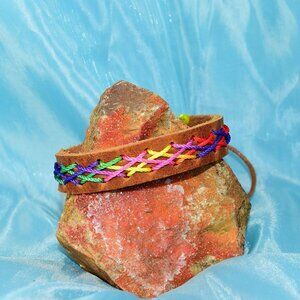 Caz Punch Mens Cross Stitch Leather Bracelet Pink Blue Yellow Brown Gift Package