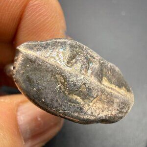 Scratches and tarnishing visible throughout, adding character to the vintage piece. Top to bottom = 1.5 inches.