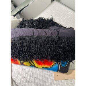 Cazimi Colorful Butterfly Print Sarong Wrap Beach Coverup Black Fringe Edges