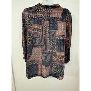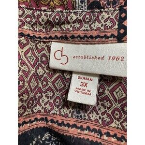 Made from lightweight and breathable polyester, this woven tunic blouse is perfect for all seasons, including summer, fall, and spring. The relaxed fit and button up style make it comfortable to wear, while the roll tab sleeves add a touch of modernity. This blouse is machine washable and comes in a plus size 3X. Don't miss out on the opportunity to add this versatile and fashionable blouse to your collection! Blouse is in excellent preowned condition with no obvious flaws holes or stains. Measurements are in photos. I appreciate your business and strive for a five star rating. Please feel free to message me with questions.