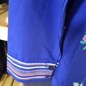 CBR Blue Colorful Peacock Blouse. There is a small thread pull on the right. I took a picture but it is very hard to see.