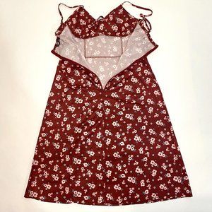 Cbr Burgundy Floral Print Back Zip Side Split Sleeveless Dress Women Size L