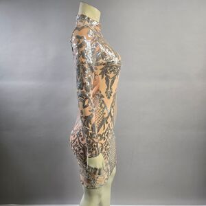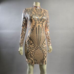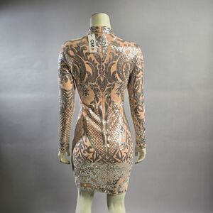 Shine bright in this elegant beige and silver sequin dress. Perfect for any special occasion, this dress will make you stand out with its intricate design and shimmering details.