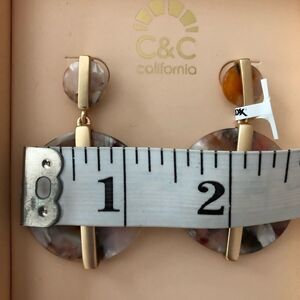 New in box! C&C California faux tortoise shell resin abalone round dangle earrings. Features brushed matte gold hardware. Post backs. Really pretty pearly colors in these beauties! See photos for approximate measurements. Bundle to save big!