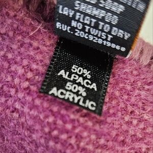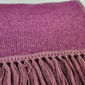 Beautiful scarf from Ccahuantico. Color is solid raspberry pink with fringe detail. Made in Peru. Material is 50% Alpaca and 50% Acrylic.