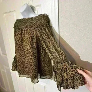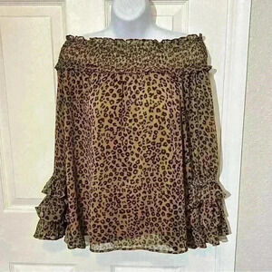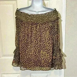 Ce Ce Womens Leopard Blouse Off The Shoulder Ruffle Long Sleeve Hi Low XS