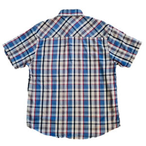 Blue, red, white and tan plaid C.E. Schmidt Workwear lightweight short sleeve casual button down shirt. Size Medium. 60% Cotton, 40% Polyester. In excellent condition.