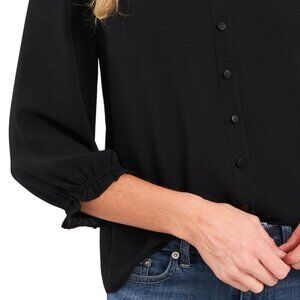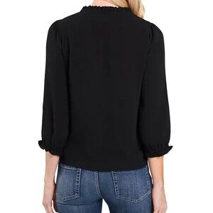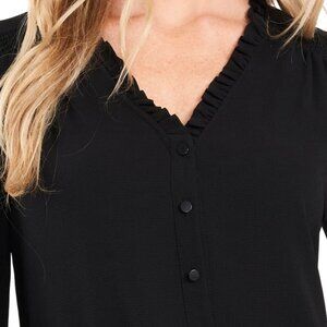 CeCe 3/4 Sleeve Ruffled V-Neck Blouse - Rich Black - Size S - NWT