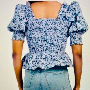 CECE Puff Sleeve Smocked Top