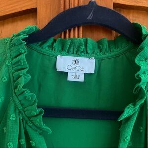 CeCe Above the Knee Green Swiss Dot Long Sleeve Summer Dress