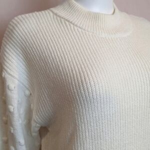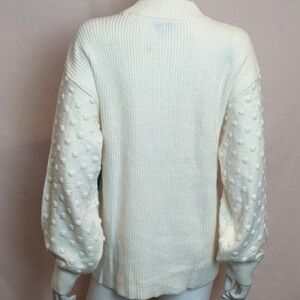 CeCe Antique White Volume Sleeve High Neck Sweater size Large