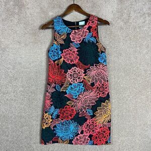 CeCe Arlington Shift Dress Women Size 0 Multicolor Floral Print Sleeveless Crepe