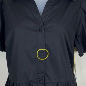 CeCe Babydoll Dress Button Front Collared Puff-Sleeve Rich Black