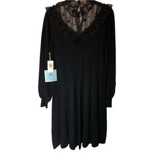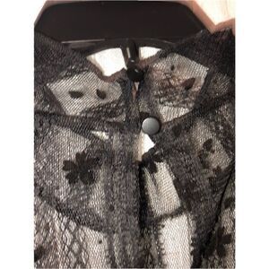 CeCe Black Ruffled Lace Top Button Back Long Sleeves Sweater Fabric BNWT…