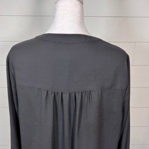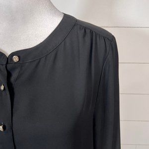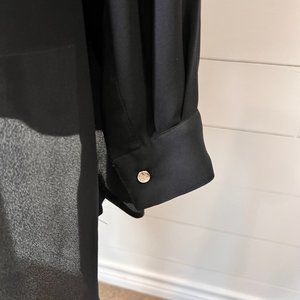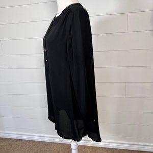 CeCe Black Semi Sheer Long Sleeve Button Down Tunic Top Size M