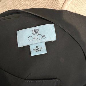 CeCe Black Semi Sheer Button Down Tunic Top is like new. This versatile blouse is perfect with jeans or leggings. Features silver logo buttons, button cuff, hi low hemline. Measures 32 inches in back, 26 inches in front. Sleeve is 23 1/2 inches. P2P is 20 inches. Machine wash. Size M