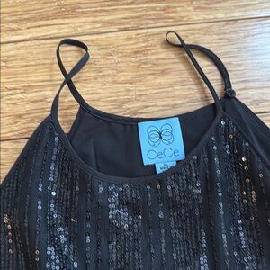 CeCe Black Sequin Halter Dress is a stunning evening dress perfect for a night out. Made from high-quality fabric, this dress features a halter neckline and beautiful sequin detailing. The black color adds a touch of elegance, while the halter style adds a trendy touch. This dress is in excellent condition and is sure to make you stand out at any special occasion. Add this dress to your wardrobe for a glamorous and stylish look.