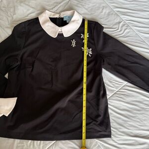 CeCe Black and White Blouse with Embellishments Rhinestone and Ruffle Sleeve