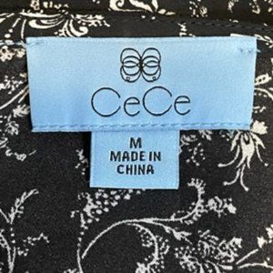 CeCe Black and White Floral Blouse with Runched Sleeves Size M