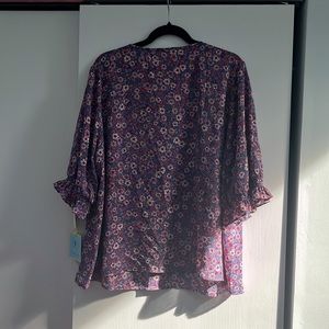 Beautiful flowers bloom with color on a gorgeous V-Neck top