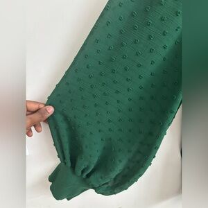 CeCe Blouse Knit Women's Size 3X Green Pullover Mock Neck Clip Dot Sheer Sleeve