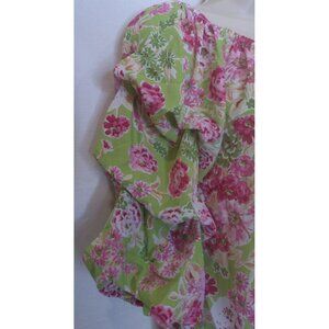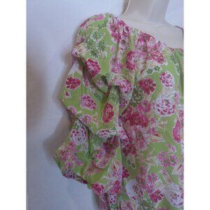CeCe Blouse Women’s Medium Floral Peasant Off the Shoulder Green Pink Spring