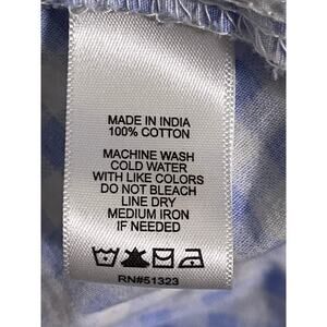 CeCe Blue Gingham Off Shoulder Blouse M | Ruffle Sleeve Tie Hem Cotton Top