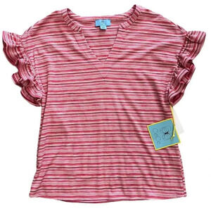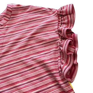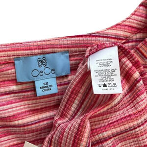 CeCe Bright Rose Rib Knit Ruffle Sleeve Top XS