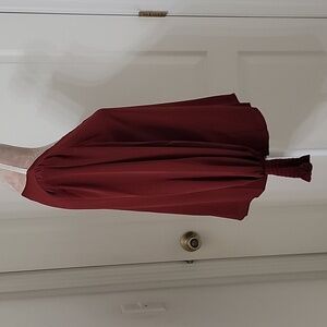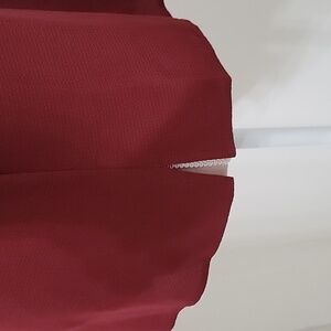 CeCe, Burgundy Size S V Neck Long Peasant Sleeve Smocked Cuff Georgette Blouse. Heavy Georgette Fabrication, V Neckline, Long Peasant Sleeves, Smocked Cuffs, Pullover Styling. Polyester/Spandex Blend. Please refer to measurements in photos to ensure proper fit.