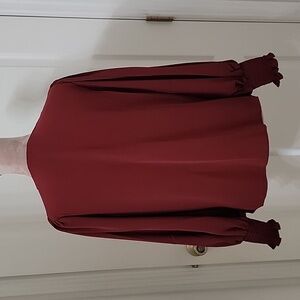 CeCe, Burgundy Size S V Neck Long Peasant Sleeve Smocked Cuff Georgette Blouse
