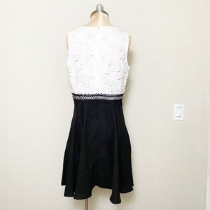 CeCe By Cynthia Steffe White & Black Lace Colorblock Fit & Flare Dress Size 8