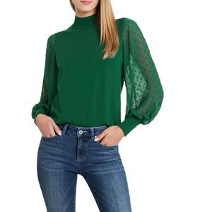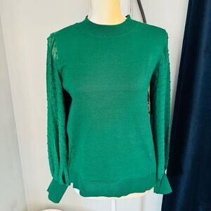CeCe Clip Dot Sleeve Sweater, Holiday Christmas Party Top, Green, Size Small NWT