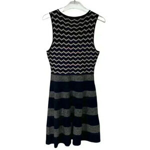 CeCe Cynthia Steffe Black Striped & Chevron Knit Dress SIZE-MEDIUM