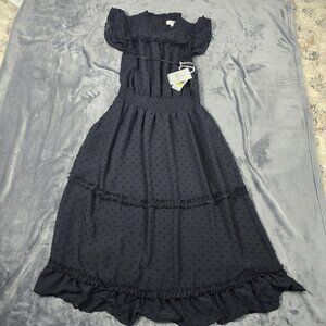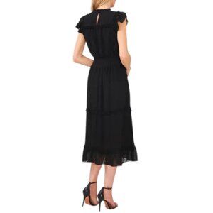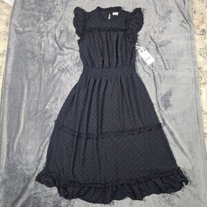 CeCe Fresh Appeal Swiss Dot Midi Dress M Black Flutter Ruffle Tiered NWT