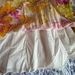 Add a splash of color with this CeCe A-line skirt. Features vibrant floral patterns in pink, orange, and yellow. Perfect for a stylish and cheerful look. Boho, preppy, feminine, floral , backyard bbq, vacation, tropical, beach vacation.