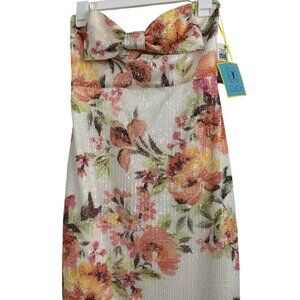 CeCe Floral Bow Sequin Strapless Dress Size 2 NWT RCC10706 $249 Special Occasion
