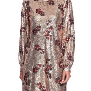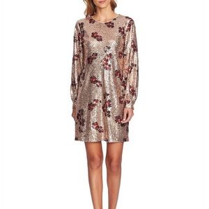 CeCe Floral Print Gold Sequin Long Sleeve Dress. Retail $169. Size 0.