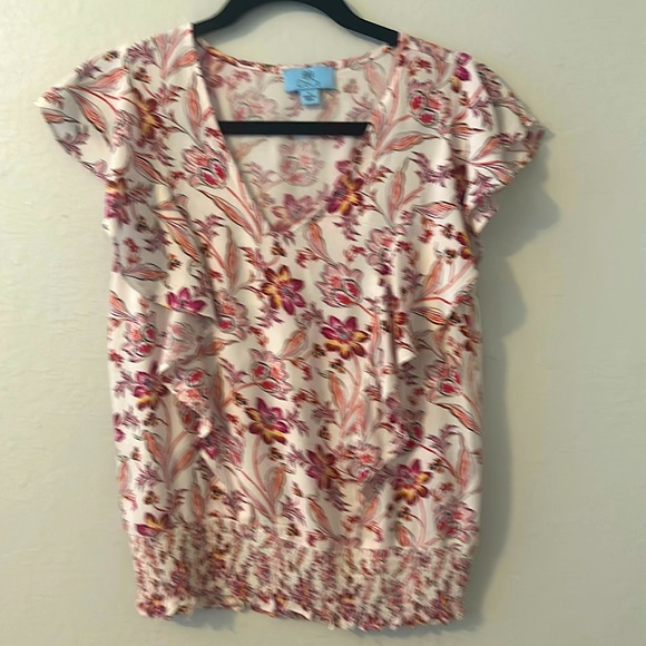 CeCe Floral Print Ruffle Blouse. Small. Gently used