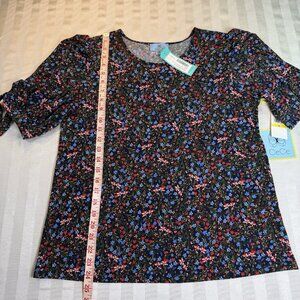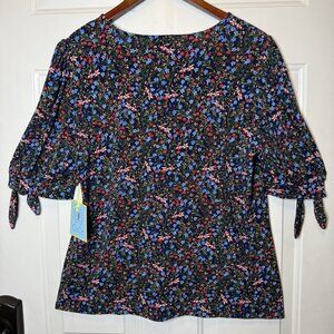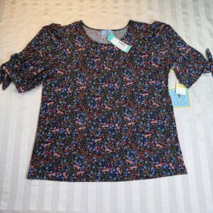 CeCe Floral Roman Tie Short Sleeve Knit Top Sz M NWT