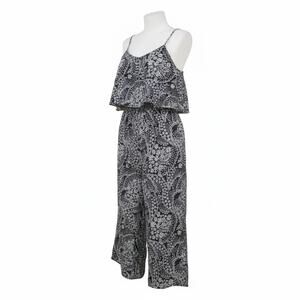 CeCe Floral Sleeveless Romper Jumpsuit Size S Black White Adjustable Straps Side Zip Maxi