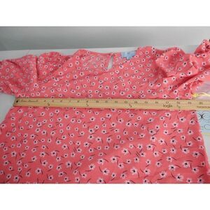 CeCe Floral Tie Sleeve Calypso Coral Top M
