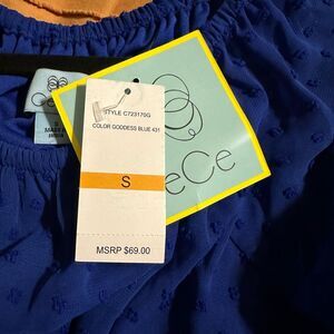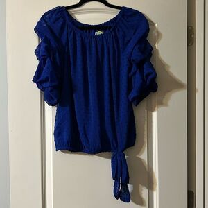 CeCe Goddess blue blouse with puff sleeves. NWT.