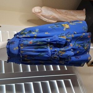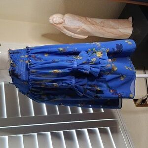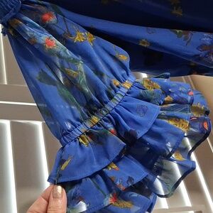 💙💐CeCe Gorgeous Blue Floral Print Off or On Shoulder Top. Elastic/rusched upper bust and shoulders. Sleeves are ruffled and 3/4 length. Includes two layers of fabric with lining. Really cute...the print is the perfect top for a tropical "vacation" or a date night out! 100% polyester fabric. Excellent condition. Size XL.