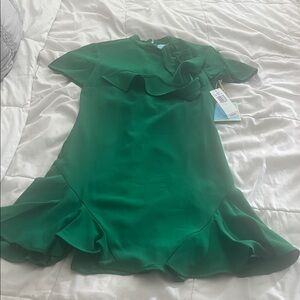 Elegant green mini dress by CeCe. Features stylish ruffle details. Perfect for any occasion.