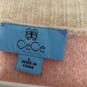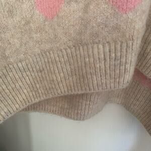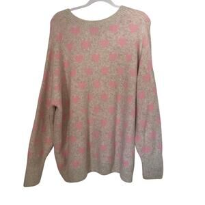 CeCe Hearts Knit Crew Neck Sweater Cream Pink Womens Size Large