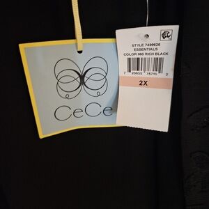 CeCe Lace Sleeve Stretch Crepe Blouse Black 3/4 Sleeves size 2X NWT