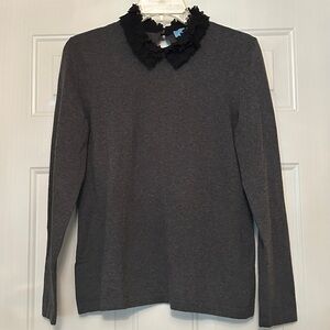 CeCe Light Black and Gray Sweater MED Fun Floral Contrasting Neckline